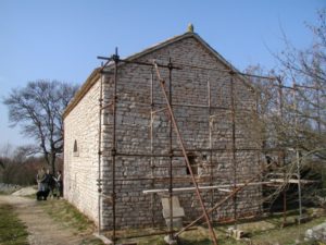U kamenju kojim je građena crkva ima dijelova namještaja s ornamentalnom plastikom (pleter) koja je karakteristična za 8. i 9. st. Dva su moguća izvora. Prvo , da je na tom mjestu bila starija crkva koja se srušila te je sagrađena tada (12. st.) nova. Druga je mogućnost (po meni vjerojatnija) da je tada u blizini postojala stara ruševna crkva čijim su materijalom izgradili sadašnju.